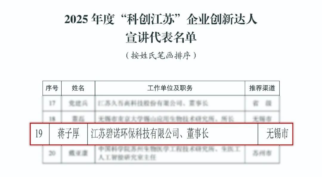 蔣子厚始終以技術(shù)突破引領(lǐng)產(chǎn)業(yè)升級(jí),其創(chuàng)新實(shí)踐與國家綠色發(fā)展戰(zhàn)略同頻共振。憑借扎實(shí)的專業(yè)功底與開闊的國際視野,他在企業(yè)經(jīng)營與行業(yè)發(fā)展中雙向發(fā)力,成就斐然。此次入選“科創(chuàng)江蘇”企業(yè)創(chuàng)新達(dá)人和宣講代表,是對(duì)蔣子厚長期深耕環(huán)保創(chuàng)新、推動(dòng)產(chǎn)業(yè)升級(jí)、引領(lǐng)行業(yè)出海、踐行社會(huì)責(zé)任的全面認(rèn)可。未來,期待他以宣講代表的身份,傳遞創(chuàng)新理念、分享實(shí)踐經(jīng)驗(yàn),帶動(dòng)更多企業(yè)與科技工作者投身創(chuàng)新浪潮。