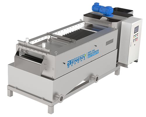 5. 均質(zhì)的物料經(jīng)粉碎切割預(yù)處理后,通過污泥泵提升至KDS濃縮脫水一體化系統(tǒng)進(jìn)行干化脫水處理。
